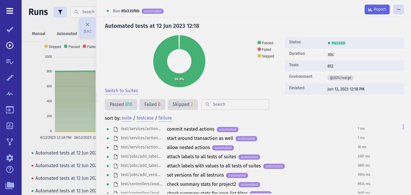 Testomat.io Pipe sends data to Testomat.io Application. Testomat.io provides free projects forever and unlimited test runs. Even it is a cloud application you can use it for free.